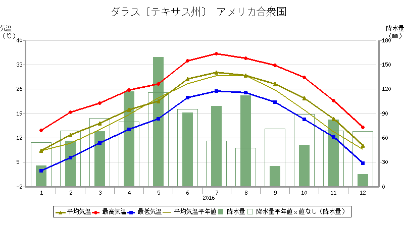 2016年ダラス気象データ(出典:気象庁)