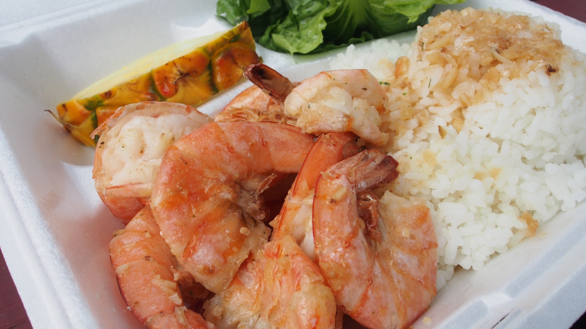 ハワイを代表するローカルフードといえばガーリックシュリンプです。ガーリックシュリンプは、炒めたエビとご飯がのったプレートです。ピリ辛に味付けされていて、暑いハワイでもモリモリ食べることができます。他にもメニューはありますので、ニンニクが苦手な人はココナッツシュリンプに挑戦してみてください。ココナッツを衣に揚げたフライで、ココナッツの甘みとエビがとてもよく合います。オアフ島の各地にカラフルな柄のシュリンプバスが止まっています。中にはローカルの人しか行かない穴場スポットもあるので、観光ブックに載っていない店を見つけたら挑戦してみてください。