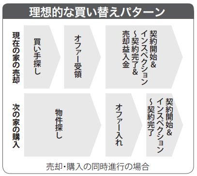 最後に、購入と売却を同時に行う買い替えですが、理想は下図のとおり。ただ、家を売ってそのお金で新しい家を買い、すぐに引っ越すのは非常に難易度が高いです。経験豊富で臨機応変に対応できるエージェント選びが重要です。